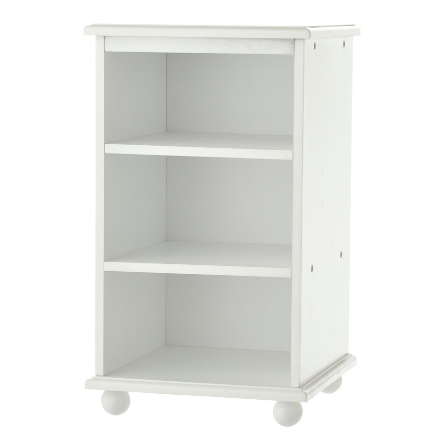 This wood Doll Storage Tower for 18 inch dolls has three shelves to hold folded Dollie outfits and accessories. It's a great solution for vertical storage and a nice decorative accent too! Pre-assembled. 7" x 15.5" x 7". Perfectly sized to fit Dollie's 6-foot Dreamhouse (sold separately)!